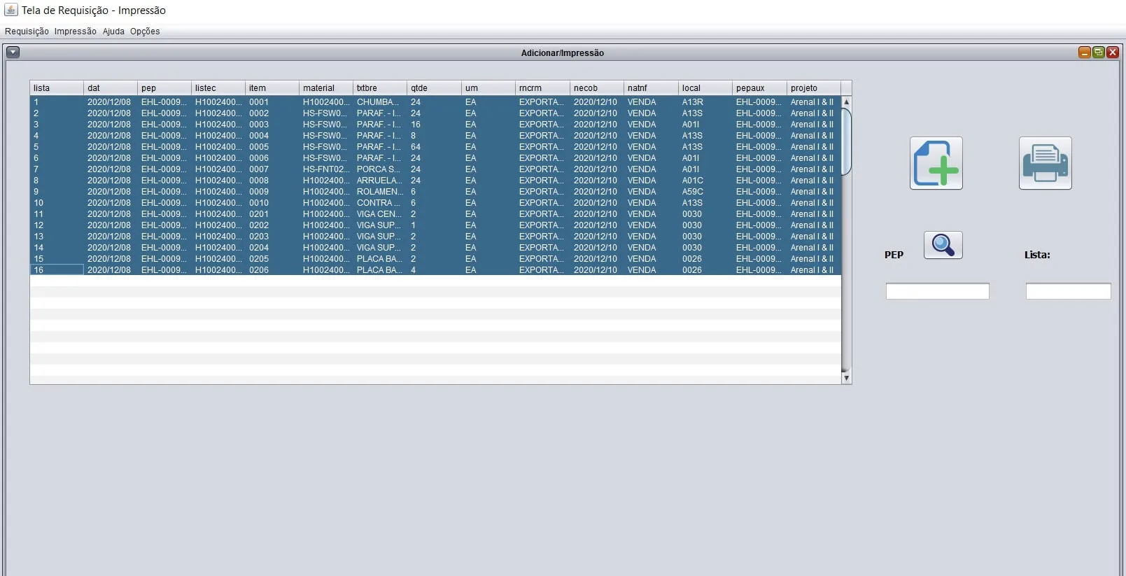 "lista", "dat", "pep", "listec", "item", "material", "txtbre", "qtde", "um", "rncrm", "necob", "natnf", "local", "pepaux", "projeto"