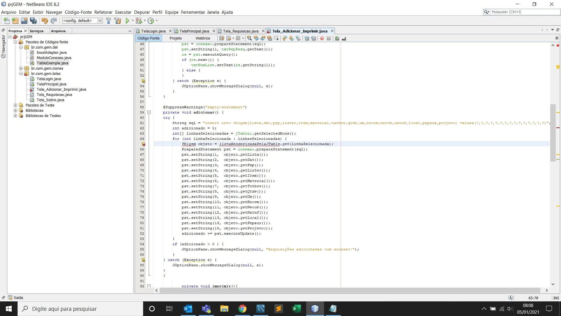 JOptionPane.showMessageDialog(null, "Requisições adicionadas com sucesso!");