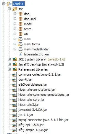 Mas é porque eu não tenho muitas telas, então só o formulário dos meus objetos e um pacote que improvisei para usar meu objeto Java “sem dor” com JavaFX(talvez venha um artigo em breve :D).
