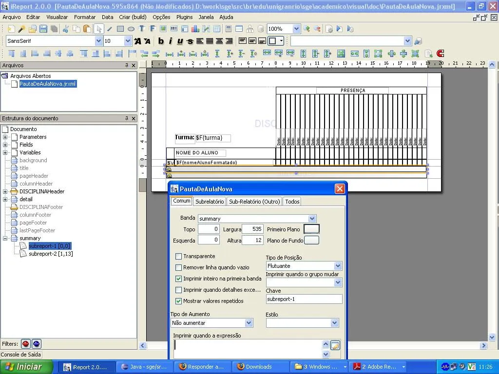 Estou gerando um relatório pelo IReport e estou com dificuldade