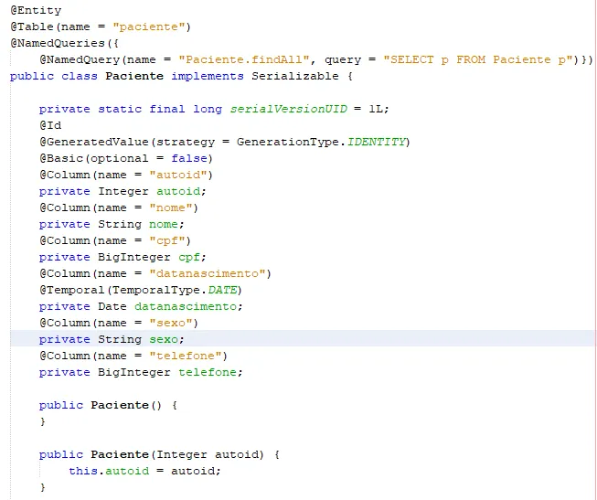 Essa é a tabela mapeada, pelo hibernate: