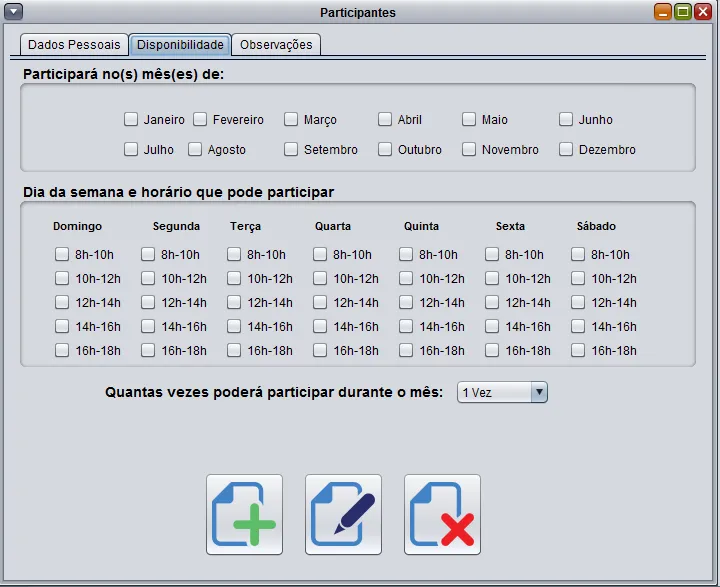 Estou começando a programar agora e estou tentando desenvolver um sistema em que as pessoas poderão entrar e indicar ao sistema, em quais meses, o dia da semana, os horários e quantas vezes por mês ela poderá trabalhar. Tendo esses dados salvos em um banco de dados, preciso que o sistema gere automaticamente uma lista para todos os dias do mês com os participantes. Os nomes não podem se repetir, pois eles irão trabalhar em duplas. Ex: