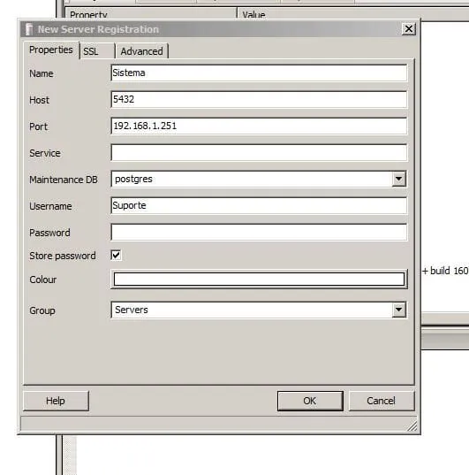O host do postreSql,a porta o ip do servidor o usuario e senha do servidor?
