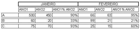 Eu preciso criar um relatório no Ireport onde existe um comparativo entre indices de cada mês entre dois anos utilizando o Cross Table. O comparativo é uma porcentagem entre o indice de um mesmo mês entre um ano e outro.