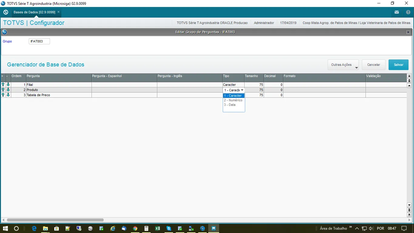 sim é o protheus da totvs, mas, la nos parametros do configurador quando vamos criar as perguntas só tem o tipo de dados data texto e numero