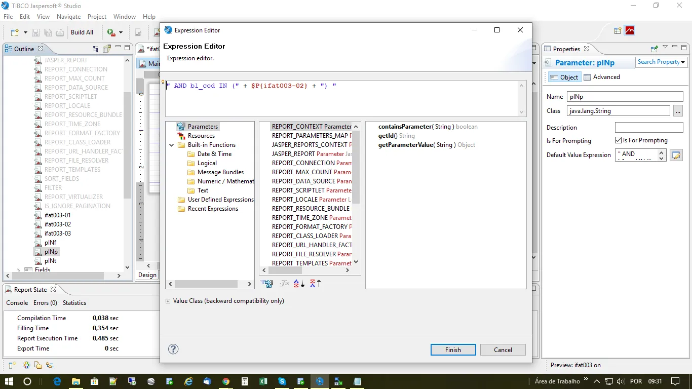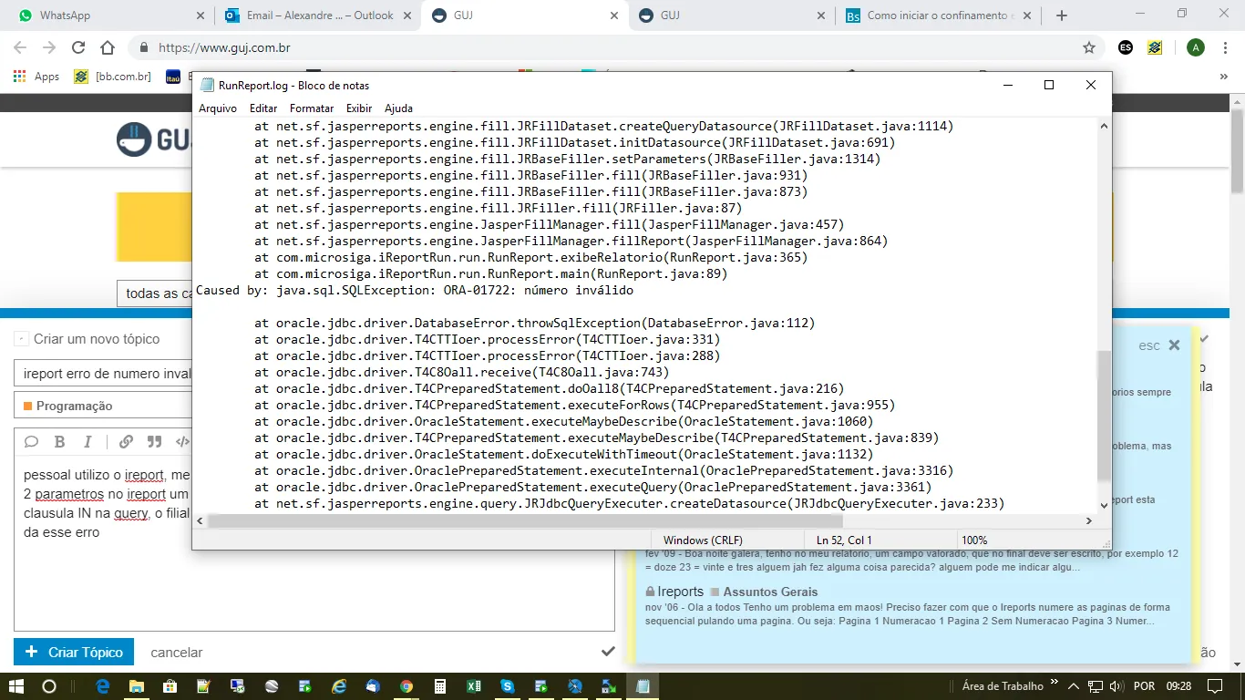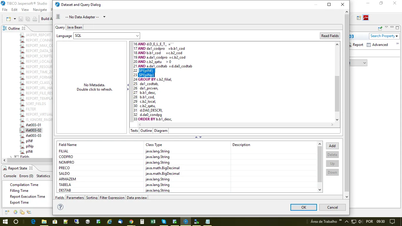Ireport erro de numero invalido