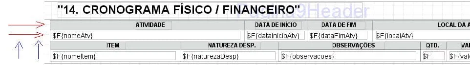 A dúvida é a seguinte… eu quero que toda aquela parte de baixo (flechas azuis) tome a posição das flechas vermelhas, quando o cabeçalho ATIVIDADE não for impresso.