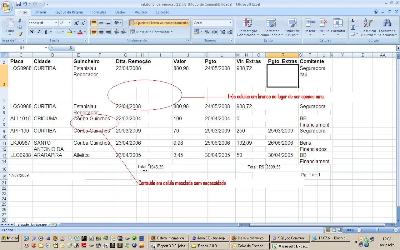 Tudo certo com PDF e RTF, mas no excel tô tendo um problema que mescla celulas sem necessidade. Como pode ser visto no arquivo em anexo.