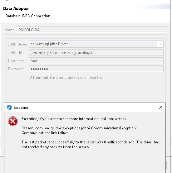 Jasper +mysql - Erro ao tentar conectar com o banco