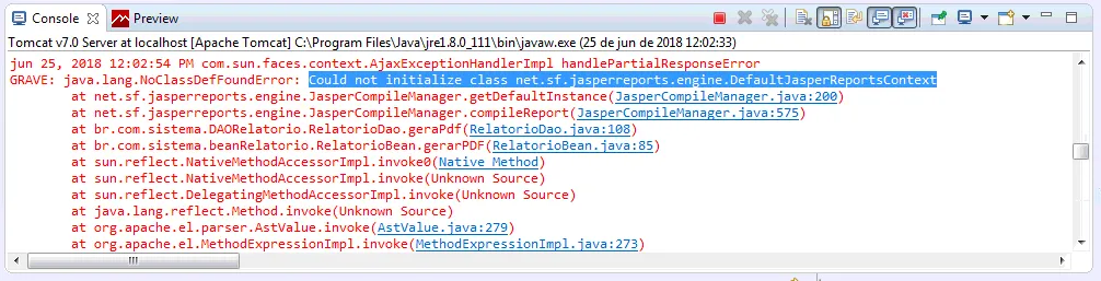Could not initialize class net.sf.jasperreports.engine.DefaultJasperReportsContext