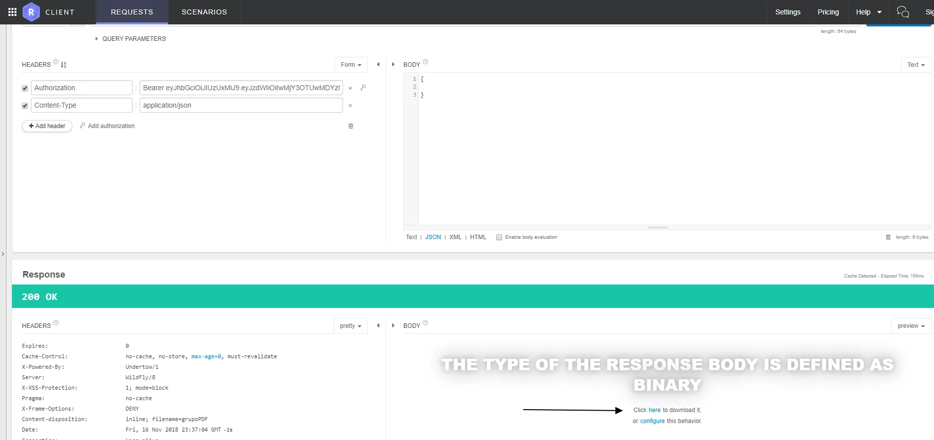 Entao funcionou a requisicao do pdf. Quando voce coloca um elemento <a> no seu html com href apontando pro link da sua requisicao, acontece o que?