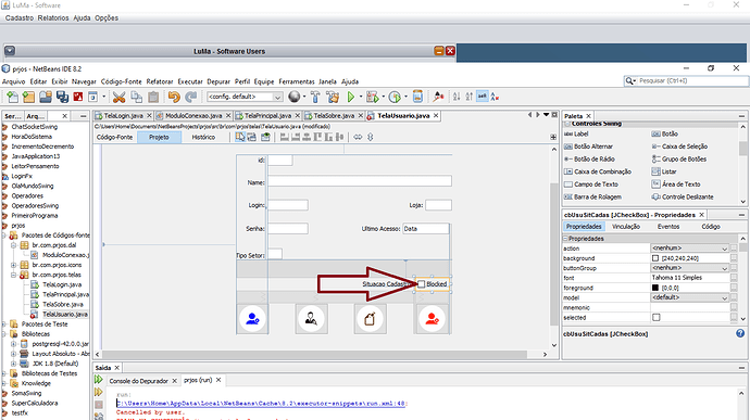 pst.setString(6,cbUsuSitCadas.isSelected() ? "'B'" : "'A'");