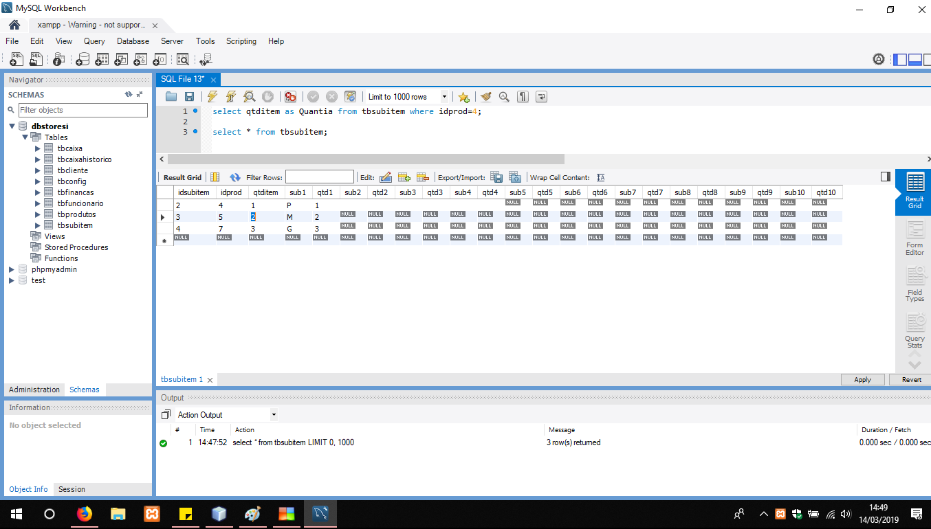 Assim no banco de dados para os Sub Itens eu tenho as seguintes informações: