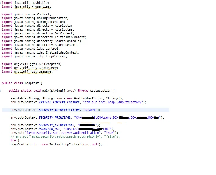 Alguém já trabalhou com Java nativo integrando com LDAP com GSSAPI?? Estou tendo dificuldades em configurar a aplicação: