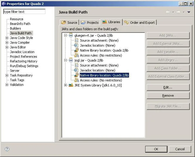 Após adicionar os JARs das bibliotecas nativas (como o JOGL), abra as subopções dos jars que utilizam as dlls clicando no “+”