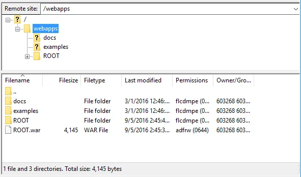 Amigo meu Server está assim, coloquei o arquivo ROOT.war e ele criou a pasta root para min no qual tem tem meus aquivos de teste. conforme abaixo, provavelmente ele fez o deploy.