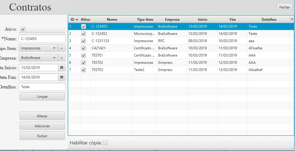 package modelo; import java.sql.Date; public class Contratos implements Comparable<Contratos>{ private ObjectProperty <LocalDate> data_inicio; public Contratos(LocalDate data_inicio){> this.data_inicio = new SimpleObjectProperty<>(data_inicio); } public LocalDate getData_inicio() { return data_inicio.get(); } public void setData_inicio(LocalDate data_inicio) { this.data_inicio = new SimpleObjectProperty<>(data_inicio); } public ObjectProperty<LocalDate> data_inicioProperty(){ return data_inicio; } public static void buscarDados(Connection connection, ObservableList<Contratos> lista){ try {Statement stmt = connection.createStatement(); ResultSet rs = stmt.executeQuery( "SELECT datai_cont FROM odinsgat.contratos;" ); while(rs.next()){ lista.add( new Contratos ( rs.getDate("datai_cont").toLocalDate()) ); } } catch (SQLException ex) { Logger.getLogger(Tipos.class.getName()).log(Level.SEVERE, null, ex); } }