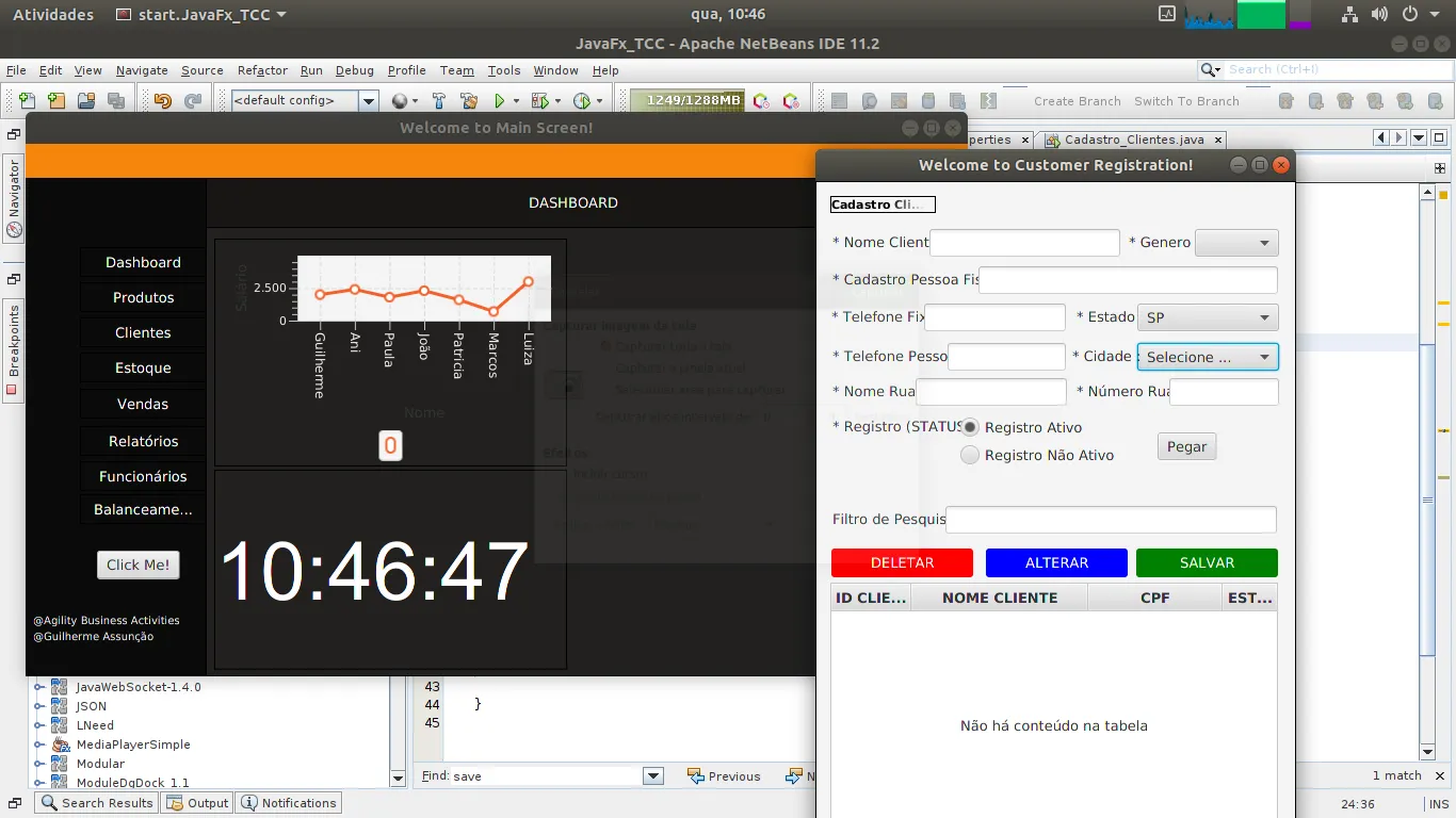 Que bom ler isso que você escreveu, eu realmente agradeço imensamente a você que esta também a me ajudar, eu vou fazer meu TCC é minha primeira graduação e eu tenho 18 anos, e estou tentando fazer com que quando o usuário iniciar a tela já apareça a hora atualizando igual naqueles canais gringos programadores, tenho um conhecimento em Java mais assim, de 1 a 1 ano e pouco e resolvi tentar um desafio com JavaFx que por sinal é um grande desafio para mim, estou melhorando meus selects para fazer um dashboard bem maneiro (risos).