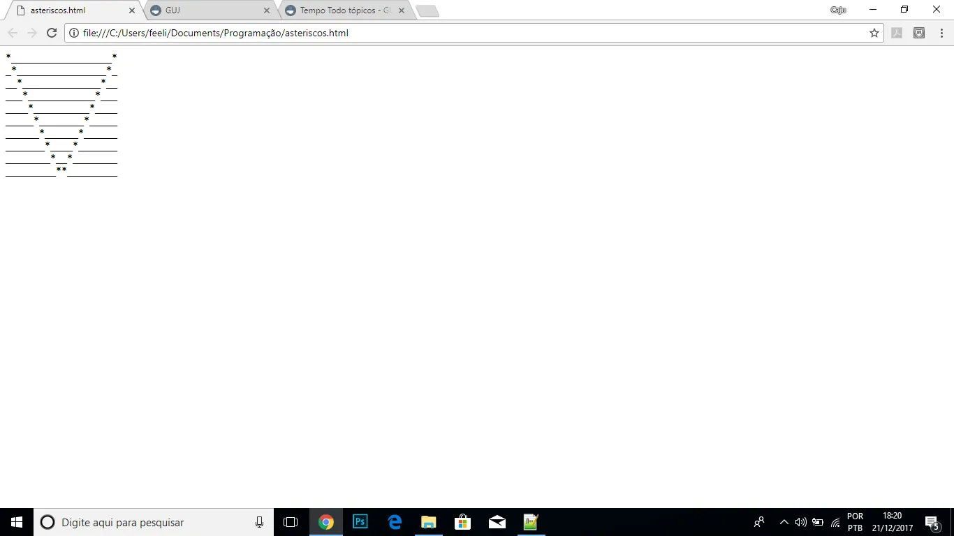tenho esse codigo e o queria saber o que preciso fazer pra na ultima linha aparecer apenas um asterisco . Alguém poderia me ajudar?