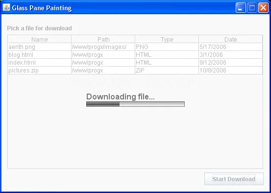 Essa classe faz uma simulação como se estivesse fazendo download de um arquivo, aí você precisa adaptar para o seu caso