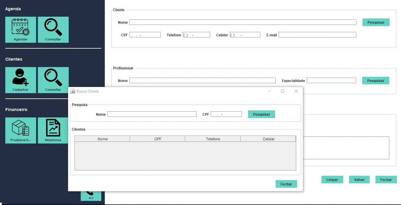 Sou iniciante em Java e estou com o seguinte problema. Estou desenvolvendo um software, onde tenho uma tela principal e utilizo JInternalFrame na mesma. Tenho uma seção nessa tela principal de agendamento de cliente, aonde ao clicar em pesquisar, ele me abre uma JFrame externa para encontrar o cliente. Após encontrar o cliente na tabela e clicar duas vezes na linha do mesmo, gostaria de retornar ao JInternalFrame já aberto essas informações. O único problema que estou tendo é passar essa informação para esse JInternalFrame já aberto. Segue imagem do software para entenderem melhor.
