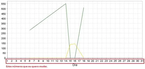 Estou montando um gráfico do tipo XY (de linha) e não encontrei uma maneira de editar o “label” do eixo X, ou seja, o eixo X fica numerado.