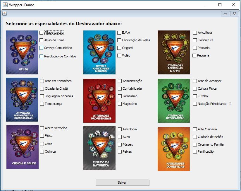 JOptionPane.showMessageDialog(this, "Especialidades marcadas: " + opcoes);