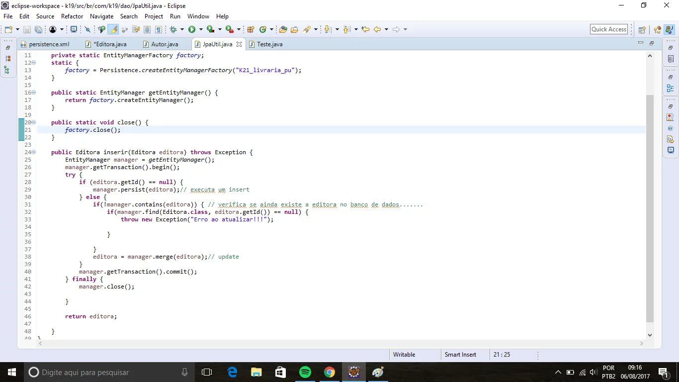 Procure pela classe ProductDao, você verá como eu implementei minha persistencia de dados com hibernate lá.