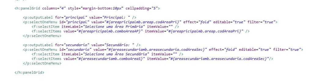 As combos funcionam. Mas a segunda combo (AreaSecundaria) só deve mostrar os dados referentes ao valor que eu escolher na primeira combo (AreaPrincipal).