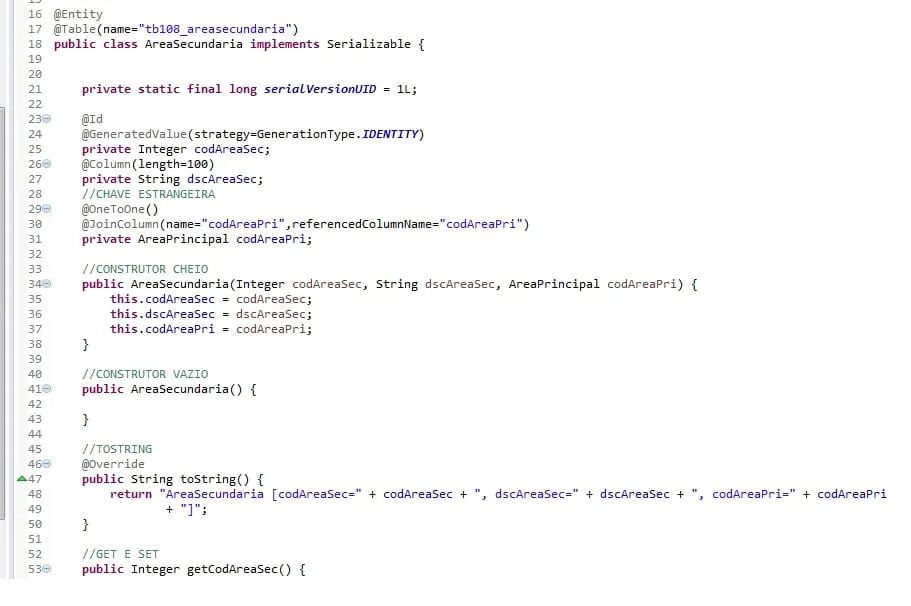 Classe AreaSecundaria