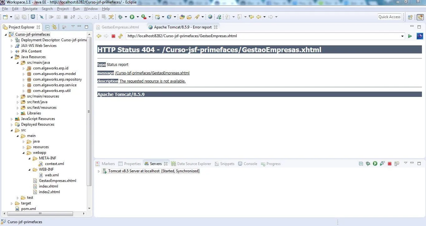 Olá pessoal, eu estou a pouco tempo desenvolvendo aplicações Web mais já tenho conhecimento em java porem eu estou com problema HTTP Status 404 pagina em xhtml não estou consigo recarrega um pagina a IDE que estou usando o Eclipse e servidor Tomcat mais Hibernate. Já tentei outras soluções mais sem sucesso