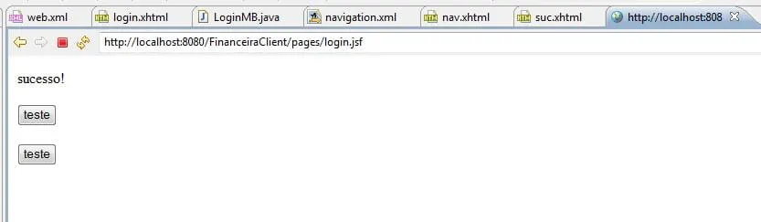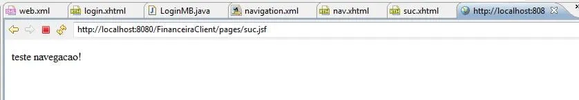 4 - No browser não troca o endereço ele continua com http://localhost:8080/FinanceiraClient/pages/suc.jsf (ERRO)