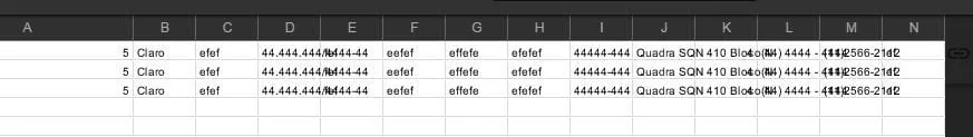 // criando linhas e colunas em um arquivo Excel com o conteúdo