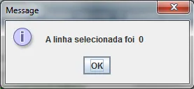 introw=tabela.getSelectedRow();intlinha=row+1;JOptionPane.showMessageDialog(null,"A linha selecionada foi "+linha);}
