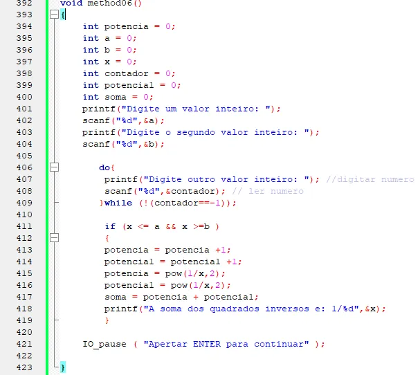 calcular e mostrar a soma dos quadrados dos inversos (1/x2
