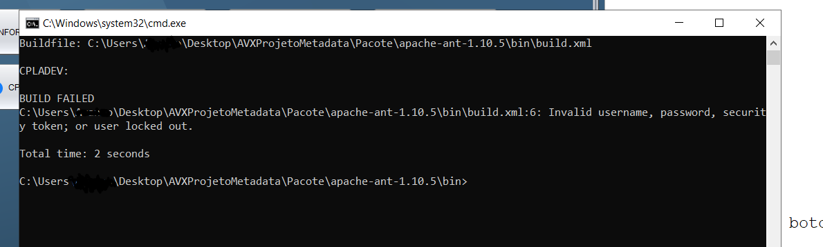 tenho uma aplicação que executa um comando no CMD, ao qual ser executado o comando ele faz leitura de um arquivo build.xml com usuario e senha e faz a conexão ao sistema Salesforce, e faz o download dos metadadas. Meu programa só passa o comando a ser executado, conforme print.