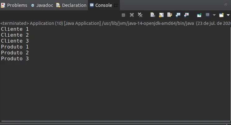 publicstaticvoidmain(String[]args){try{FileReadertxt1=newFileReader("Clientes.txt");//NOME DO ARQUIVO PARA LEITURA FileReadertxt2=newFileReader("Produtos.txt");//NOME DO ARQUIVO PARA LEITURAScannerscan=newScanner(txt1);//O SCANNER IRÁ FAZER UMA VARREDURA NO ARQUIVOwhile(scan.hasNextLine()){//O MÉTODO hasNextLine() SÓ PARA QUANDO CHEGA NA ULTIMA LINHASystem.out.println(scan.nextLine());}scan=newScanner(txt2);while(scan.hasNextLine()){// AQUI COMEÇA A LEITURA DO SEGUNDO ARQUIVOSystem.out.println(scan.nextLine());}}catch(FileNotFoundExceptione){System.out.println("ARQUIVO NÃO ENCONTRADO");//CASO NÃO ENCONTRE OU O NOME DO ARQUIVO ESTEJA INCORRETO, APARECERÁ ESSA MENSAGEM}}