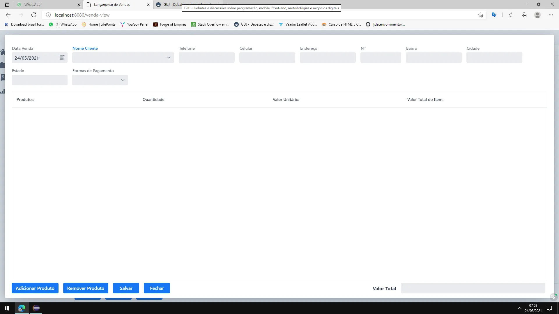 Nesta segunda janela, o usuario preenche o nome do cliente, os demais campos são preenchidos automaticamente, o usuario tbm preenche a forma de pagamento, abaixo destes campos, coloquei uma grid, que ira receber as informações de cada produto escolhido.