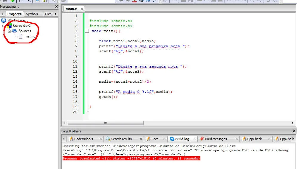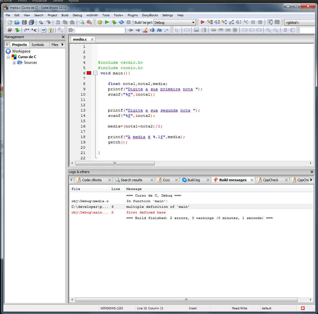 Acabei de ler um livro e estou no exercicio consegui fazer o exercicio só que vive dando erro. o Exemplo do exercicio roda traquilamente e o meu não. vou colocar os 2 codigos para comparar. na IDE CodeBlocks acusa o "main" como erro