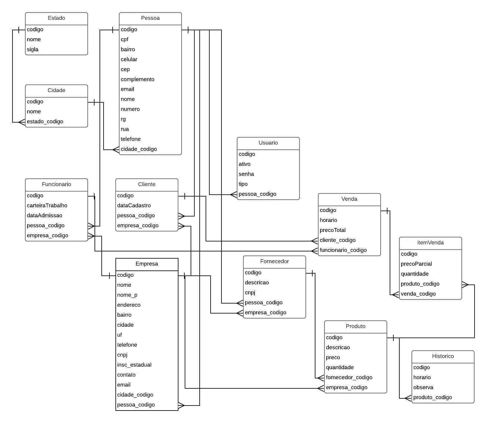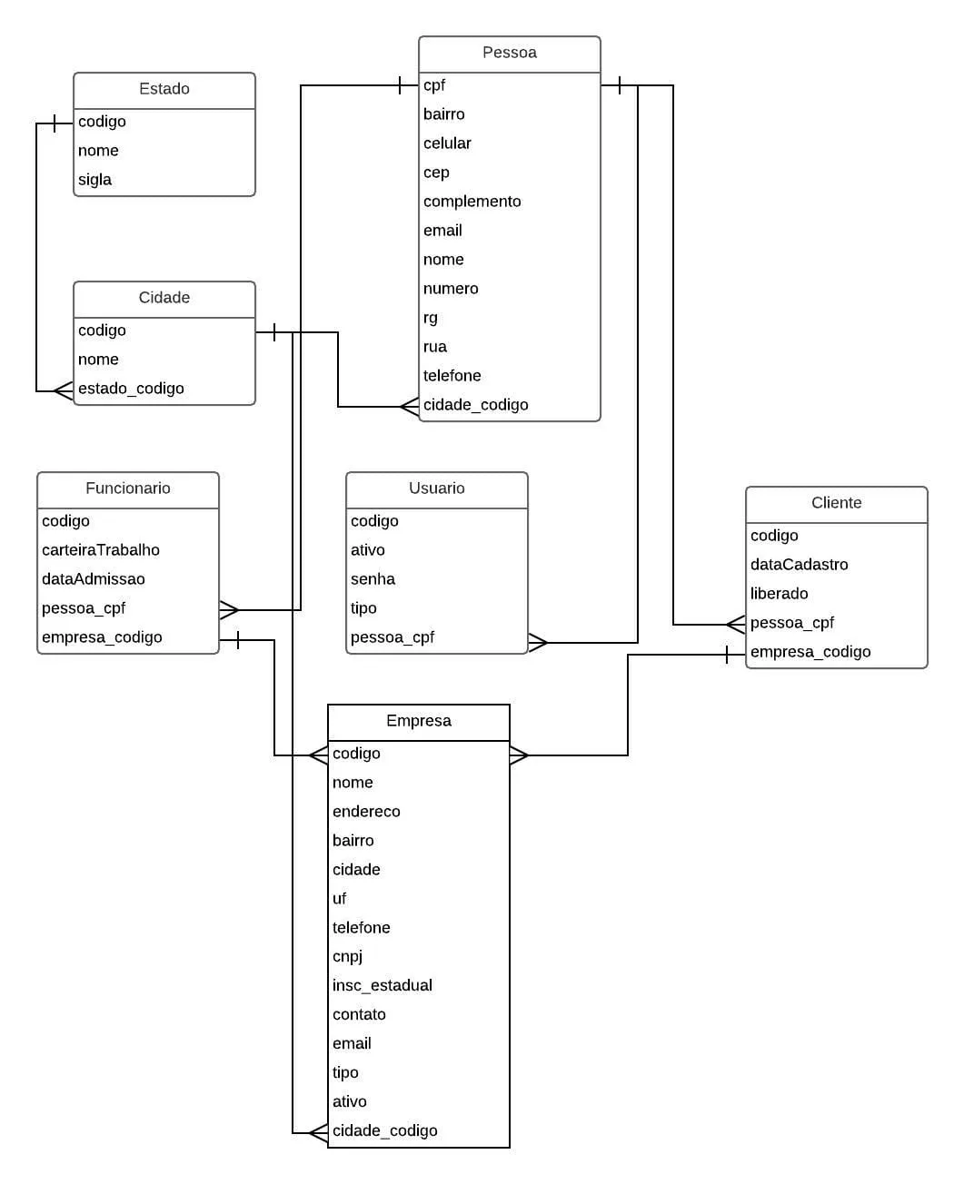 Esse é o diagrama. (Empresa está ligado a Pessoa para cadastrar o proprietário da mesma.)