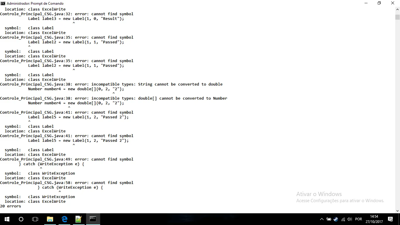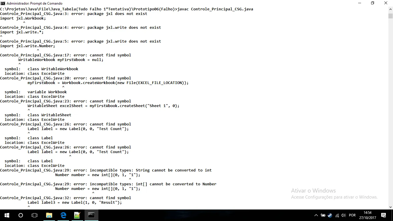 os erros que dão quando tento compilar pelo cmd na pasta do arquivo.java esta somente o jxl.