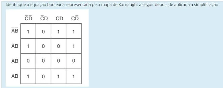 - duas primeiras linhas (~A), primeira e ultima coluna(~D) --> ~A~D