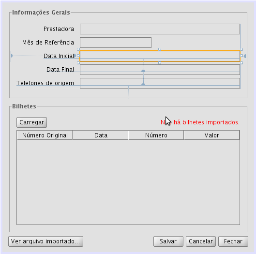 Eu estou tentando alinhar o JTextField referente à “Data Inicial” ao JTextField referente ao “Mes de Referência” (imagem abaixo). O problema é que, quando eu solto o botão do mouse, ele se alinha com o primeiro JTextField (Prestadora)! Vejam na segunda imagem. Não sei se pode ter algo a ver, mas eu excluí um JTextField e um JLabel logo acima do campo “Data Inicial”. Há algo minimamente lógico que se possa fazer numa situação dessas? Alguém já passou por isso?