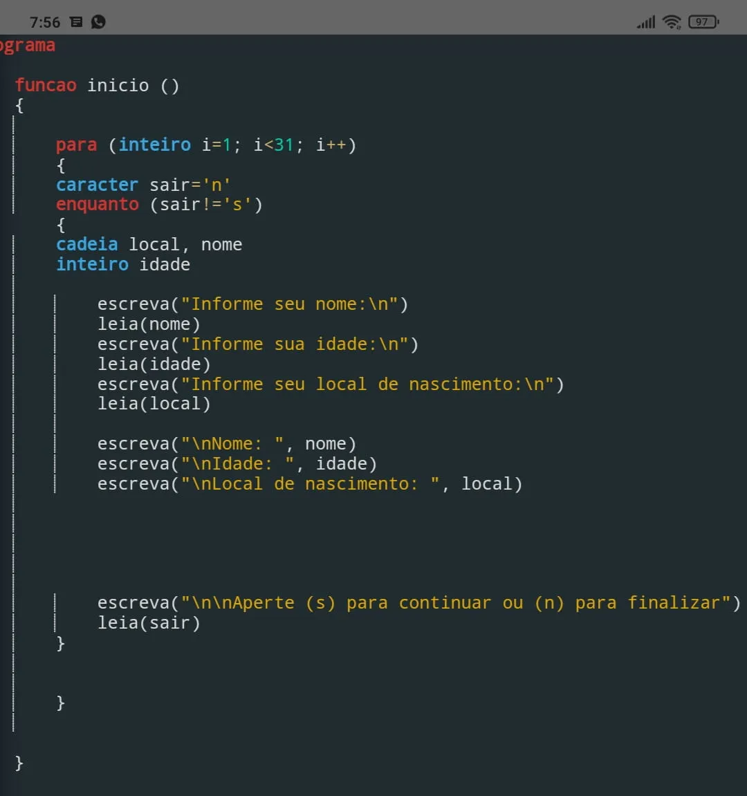 escreva("\nLocal de nascimento: ", local)