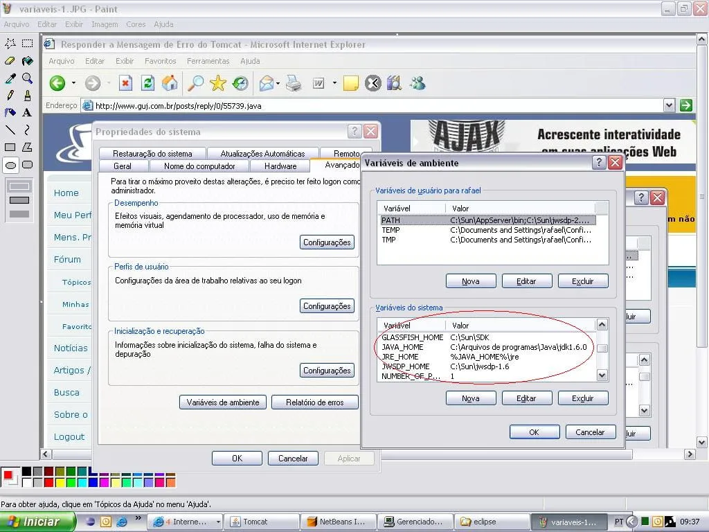na segunda imagem voce ver a variavel java_home e jre_home indicando o jdk