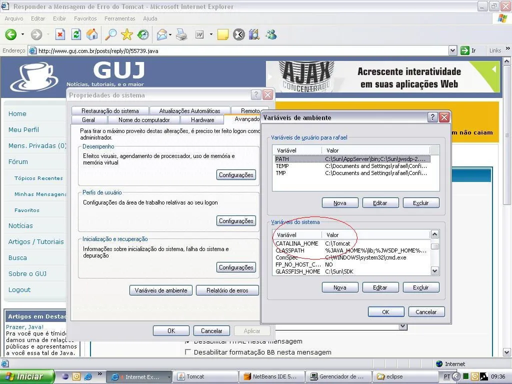 PAINEL DE CONTROLE - SISTEMA, aba AVANÇADO, botão VARIAVEIS DE AMBIENTE, no campo variaveis de sistema crie suas variaveis