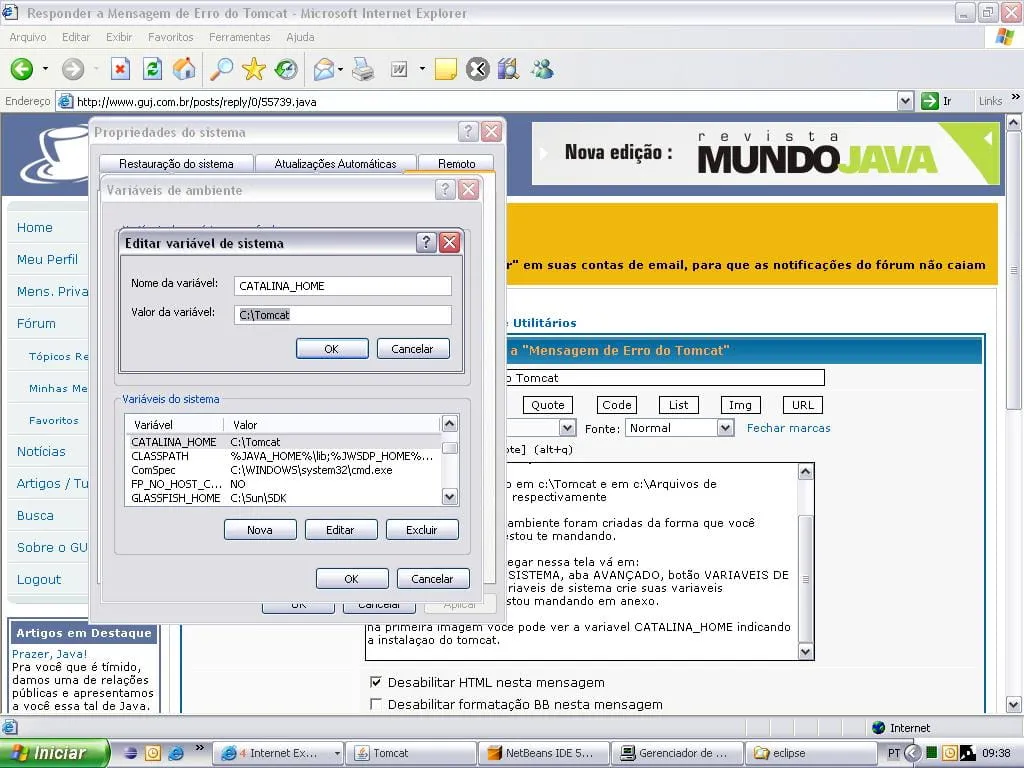 Mensagem de Erro do Tomcat