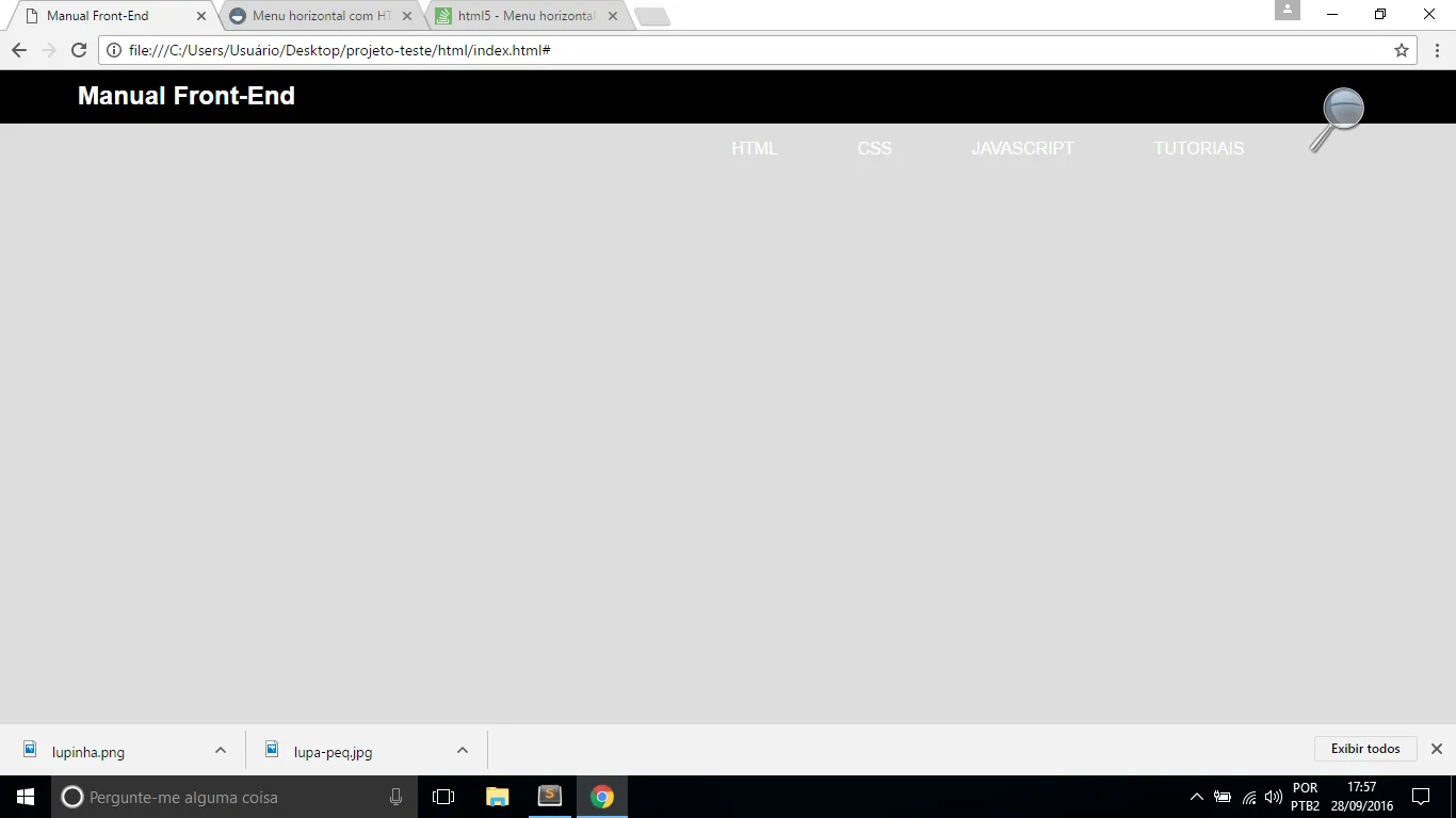 Enfim, utilizar HTML e CSS pra fazer isso é bem mais complicado do que usar um bootstrap da vida, mas eu realmente quero aprender a mexer e não ficar tão dependendo de frameworks. O grande problema é na hora do menu horizontal, segue código abaixo: