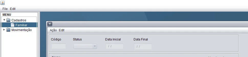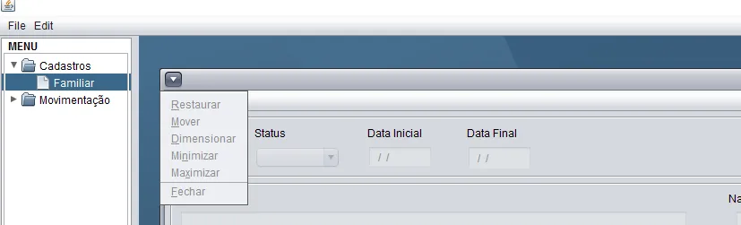 Quando clico no item Familiar, o JInternalFrame abre normalmente. Acontece que não estou conseguindo fechar somente ele.