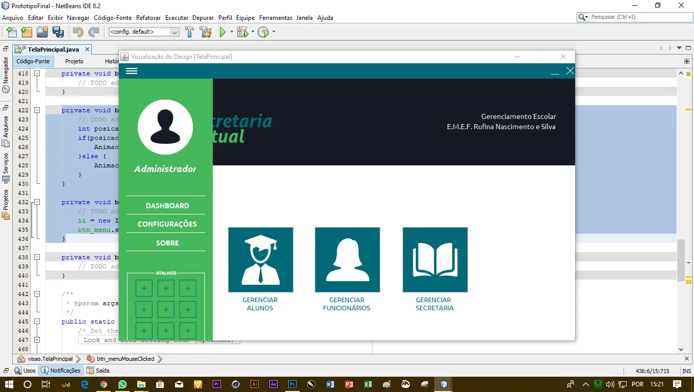 Vou postar a parte do código do menu e do botão e enviar um print da tela do programa.
